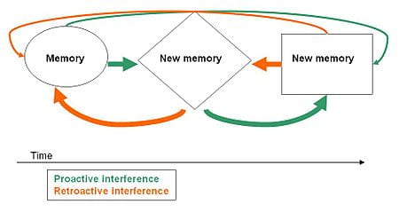 Ever start a new semester and keep walking to last semester’s classes? That’s proactive interference in action. Your old routine is so engrained in your mind that it overrides the new schedule you are still getting used to.